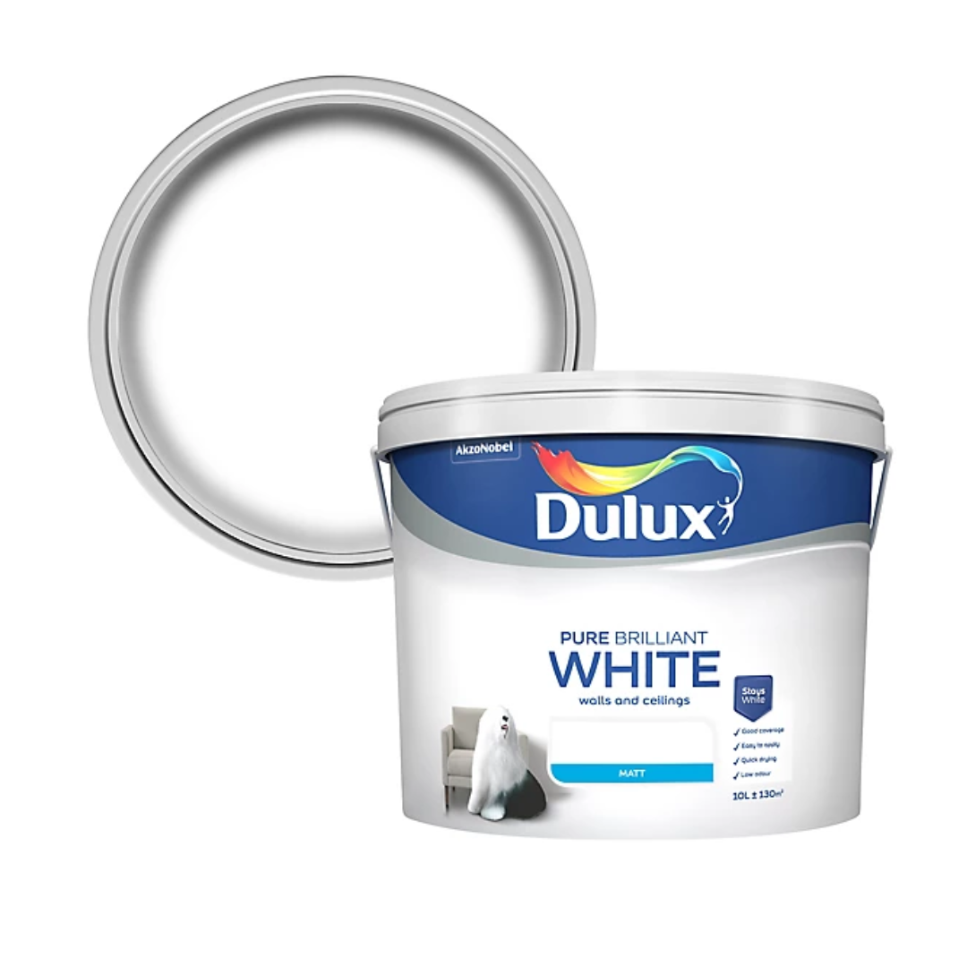 Dulux Walls & Ceilings Pure Brilliant White Matt Emulsion paint, 10L