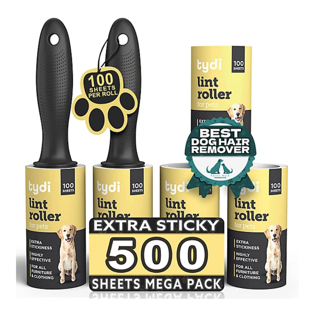 Tydi Pet Lint Rollers – 500 Sheets 100 per Roller and 2 Handles – Reusable Sticky Rollers for Pet Hair and Clothes