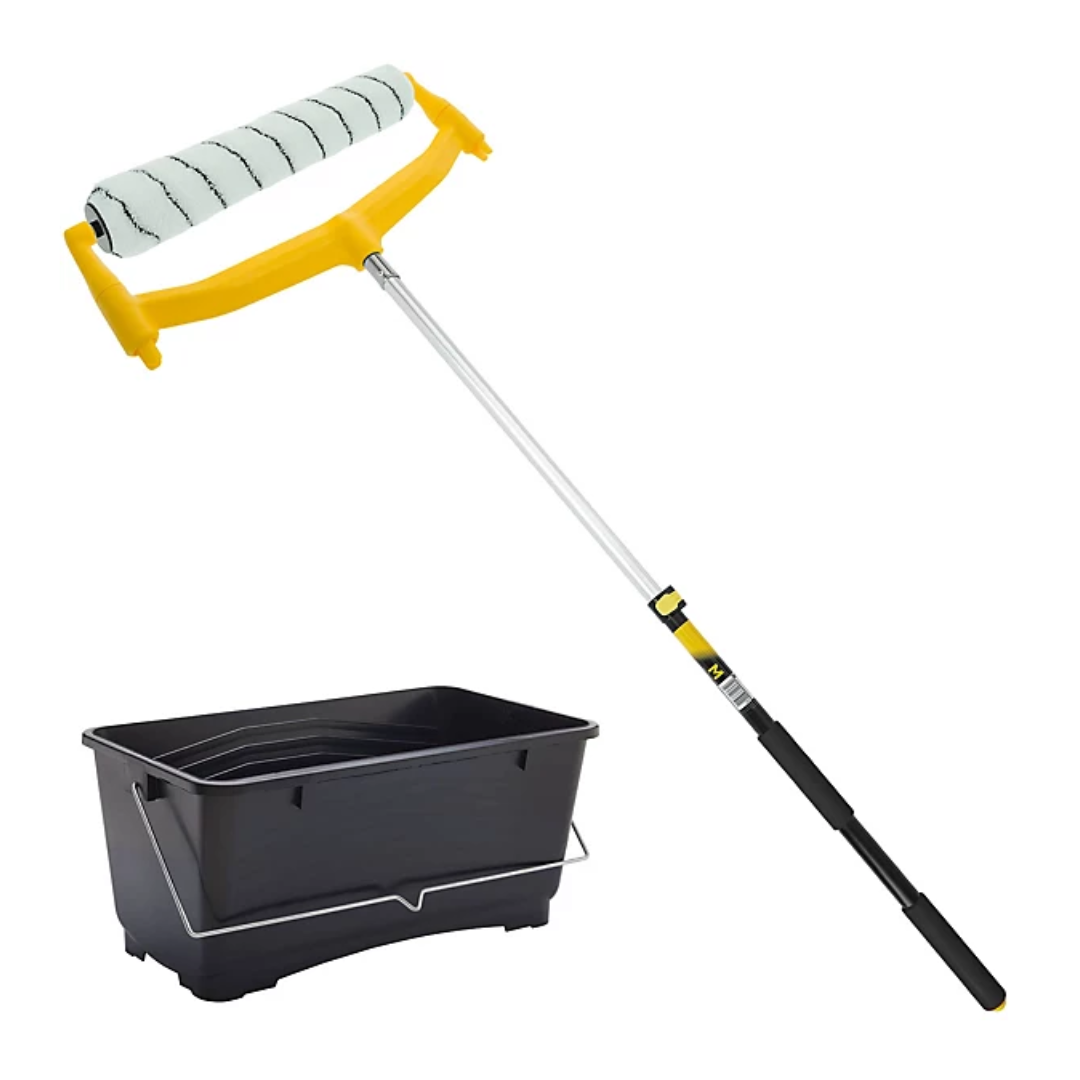Coral Manitoba 15 inch Microfibre, Emulsion Speedy Paint Roller Set Extension Pole 0.6-1.2M With 25L Scuttle